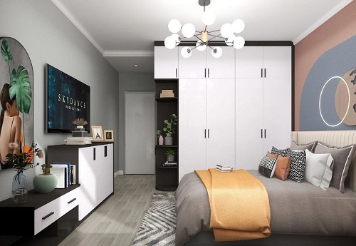 主臥采用藍灰色和粉色,搭配活力橙的床品撞色設(shè)計,讓整個空間有了質(zhì)的飛躍,米白色的床頭,高級灰的被子,優(yōu)雅的掛畫,無異于讓整個空間時尚與復古并存。