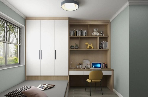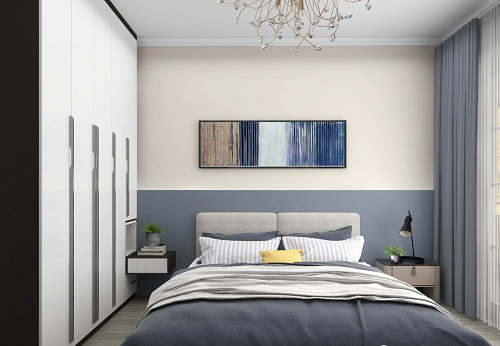 次臥則更加簡潔一些,絕美的灰藍,是僅次于高級灰的裝飾色彩,既有著灰色的溫柔高雅,也有藍色的沉靜內(nèi)斂,簡單的設(shè)計,溫馨且舒適。