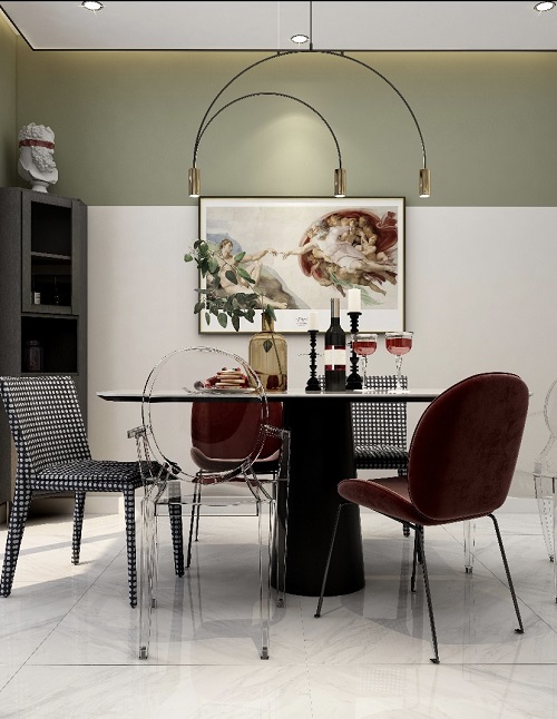 灰色與淺綠色的拼色設(shè)計(jì),清爽利落,使得空間更加洋氣和時髦,黑白格的座椅,讓空間少了一些約束感,顯得更加特別。