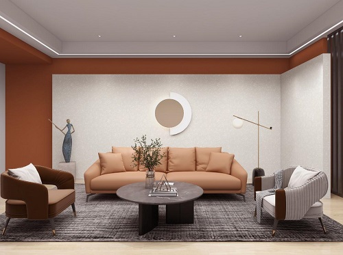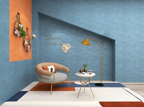客廳背景墻,大膽的配色帶來了飄逸的跳躍感,亮藍(lán)色與亮橘色打破了空間的沉悶,米色的點(diǎn)綴使空間散發(fā)著暢快的氣息,完美展現(xiàn)極致個性。