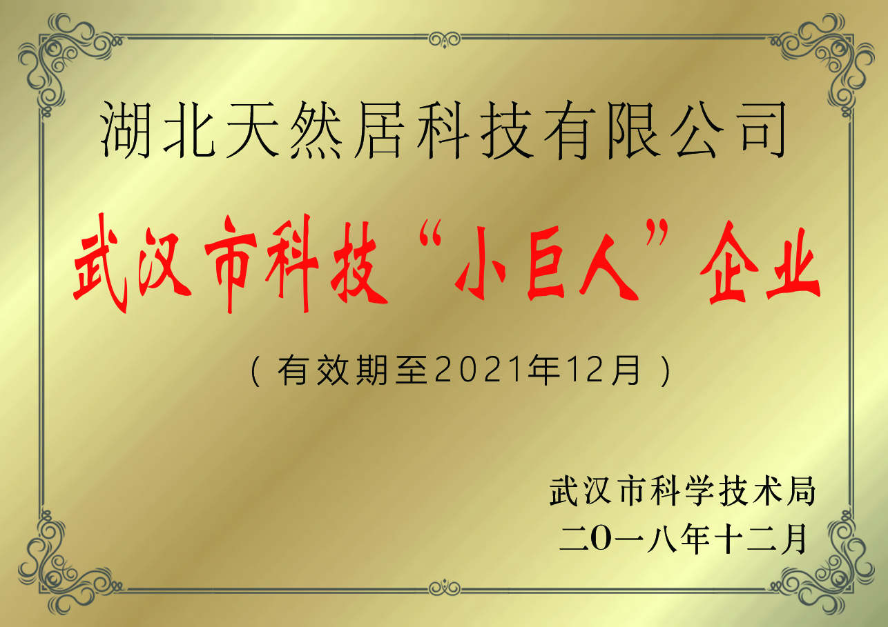 熱烈祝賀湖北天然居科技有限公司榮獲武漢市科技“小巨人”企業(yè)。榮獲此稱號也標(biāo)志著武漢市科技局對湖北天然居科技有限公司作為高新技術(shù)企業(yè)的高度認(rèn)可。