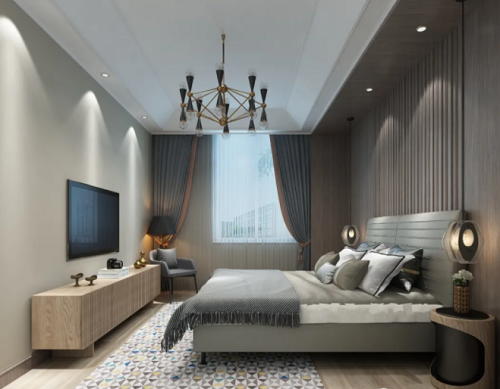 主臥空間延續(xù)了整體裝修風(fēng)格,現(xiàn)代輕奢的魅力得以更淋漓盡致地體現(xiàn)。