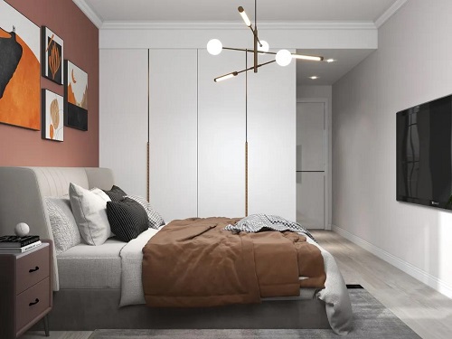 次臥一柜到頂?shù)囊鹿?,?jiǎn)單線條裝飾,沒(méi)有過(guò)多華麗的裝飾,溫馨自在的客臥空間,更加舒適。