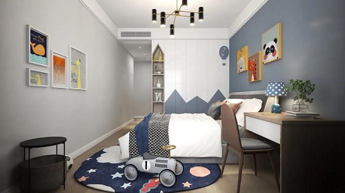 兒童房藍(lán)白相間的柜門,搭配在原木系的柜體上,清新脫俗,沒(méi)有任何的壓抑感,讓孩子盡享生活的美好。