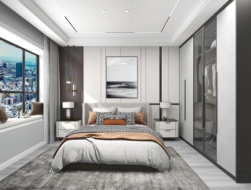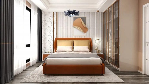 簡約的臥室設(shè)計,創(chuàng)造出一個悠然自得的居家環(huán)境,再煩躁的心也能安定下來。床頭背景墻格柵,無形延伸了視覺上的空間高度。